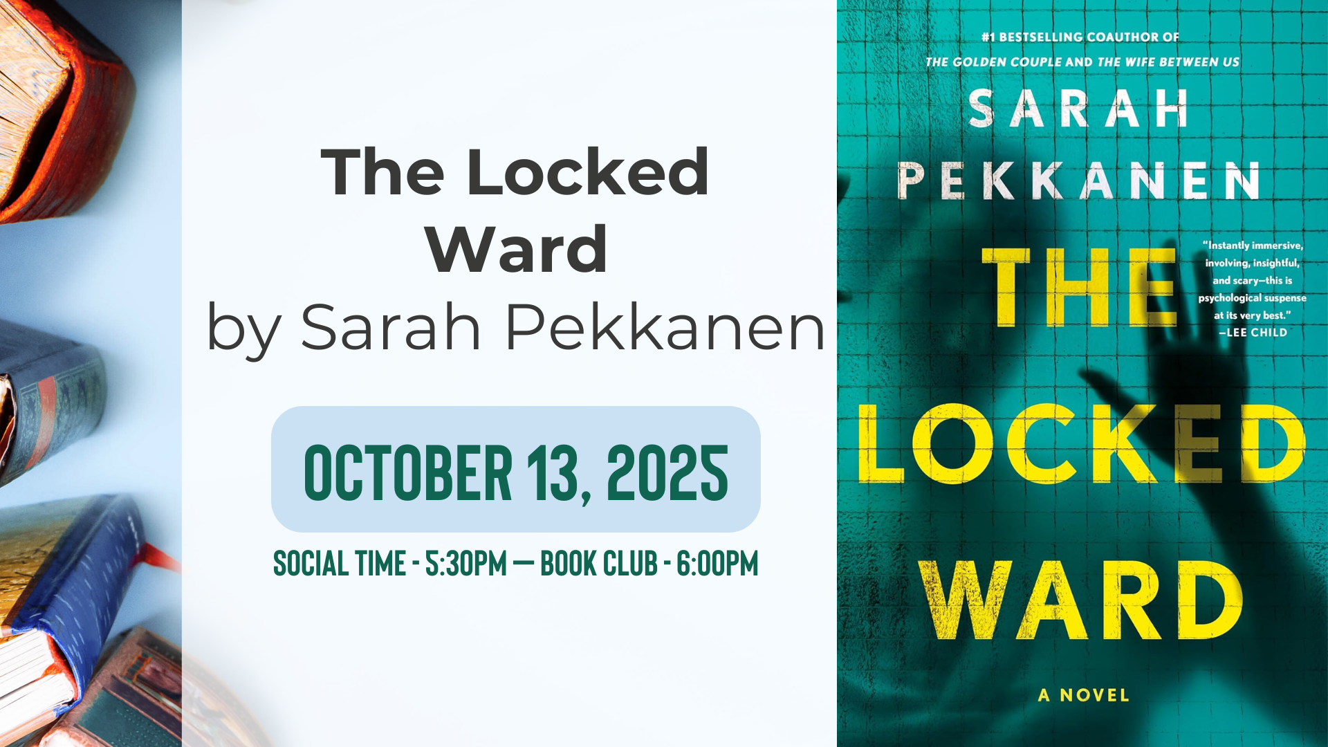 Social Time – 5:30pm - Book Club – 6:00pm